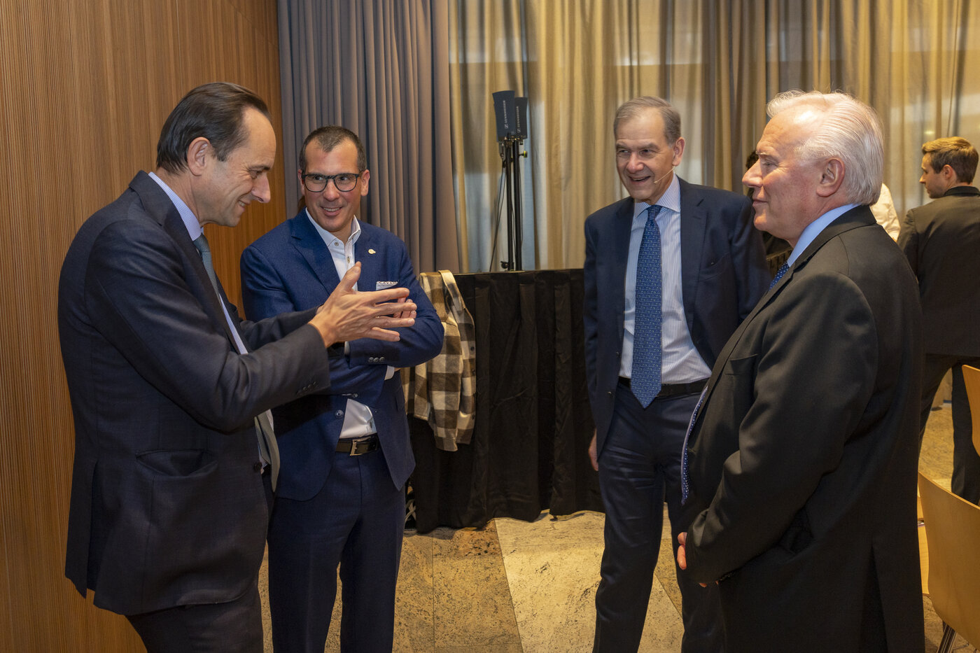 An der anschliessenden Podiumsdiskussion diskutierten Christoph Reich, Group CEO Liechtensteinische Landesbank, und Olivier de Perregaux, CEO LGT Private Banking, mit Mark Branson und Mario Gassner, Vorsitzender der Geschäftsleitung der FMA, aktuelle Finanzstabilitätsthemen. Insbesondere die Proportionalität der Regulierung stand dabei im Zentrum. Aber auch die kreditnehmerbasierten Massnahmen und das Verhältnis zwischen Risiken und Stabilität war ein Thema.